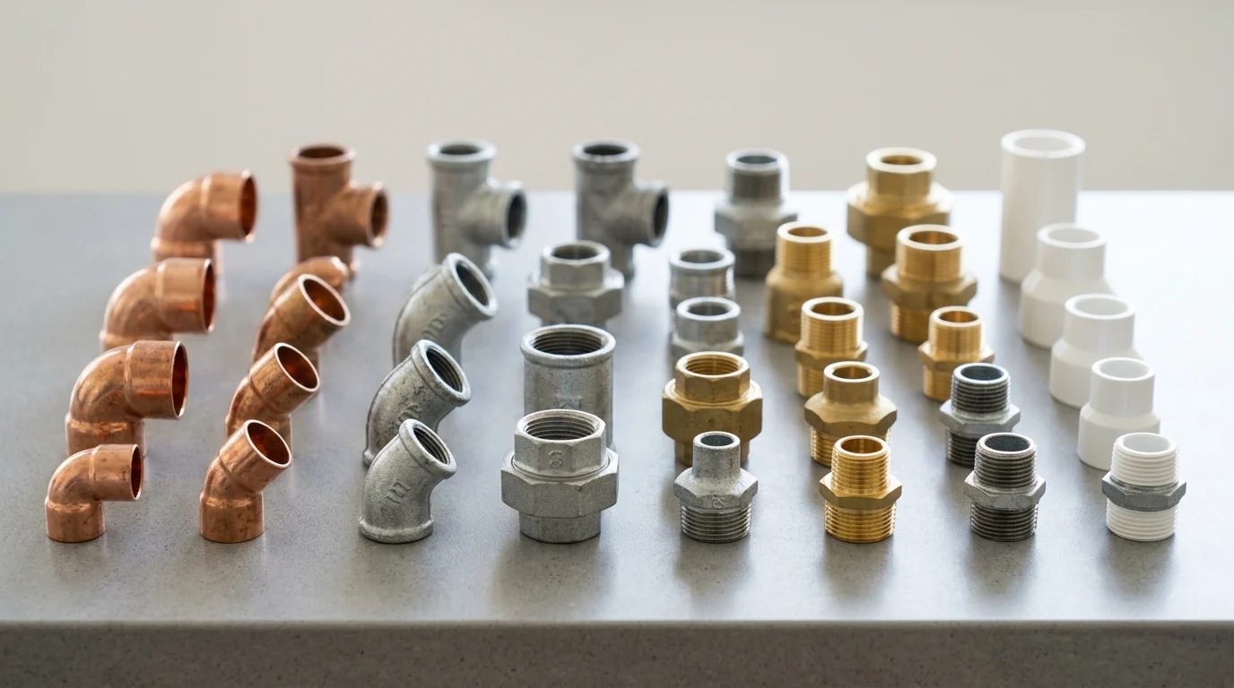 The core types are elbows, tees, couplings, reducers, and unions. Each serves a specific layout need: changing direction, branching flow, joining runs, changing size, or allowing equipment removal.